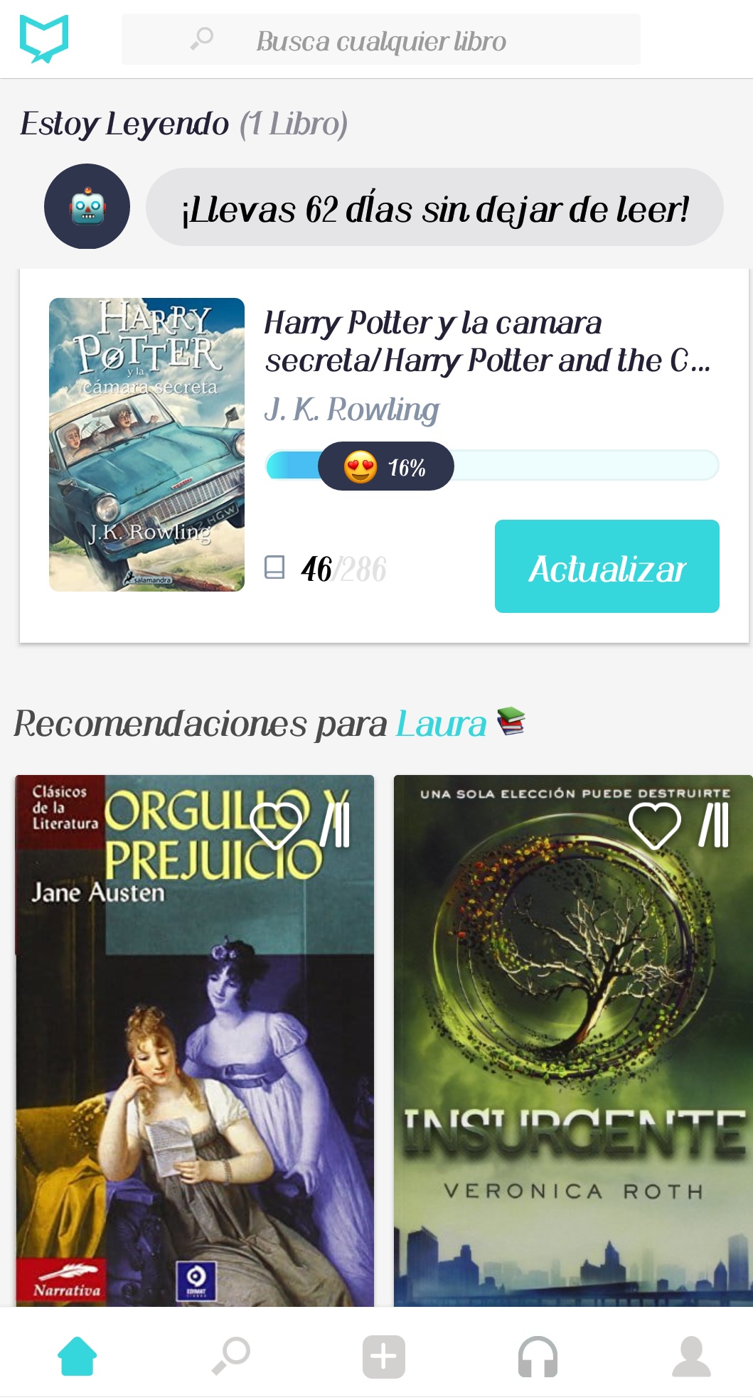 La app que yo actualmente uso es Beek y me ha funcionado de maravilla, me encanta porque me da medallas cada que cumplo un reto y ya llevo muchos días seguisos leyendo, también me gusta que está en idioma español y puedo seguir a otros lectores que tienen mis mismo gustos literarios.
